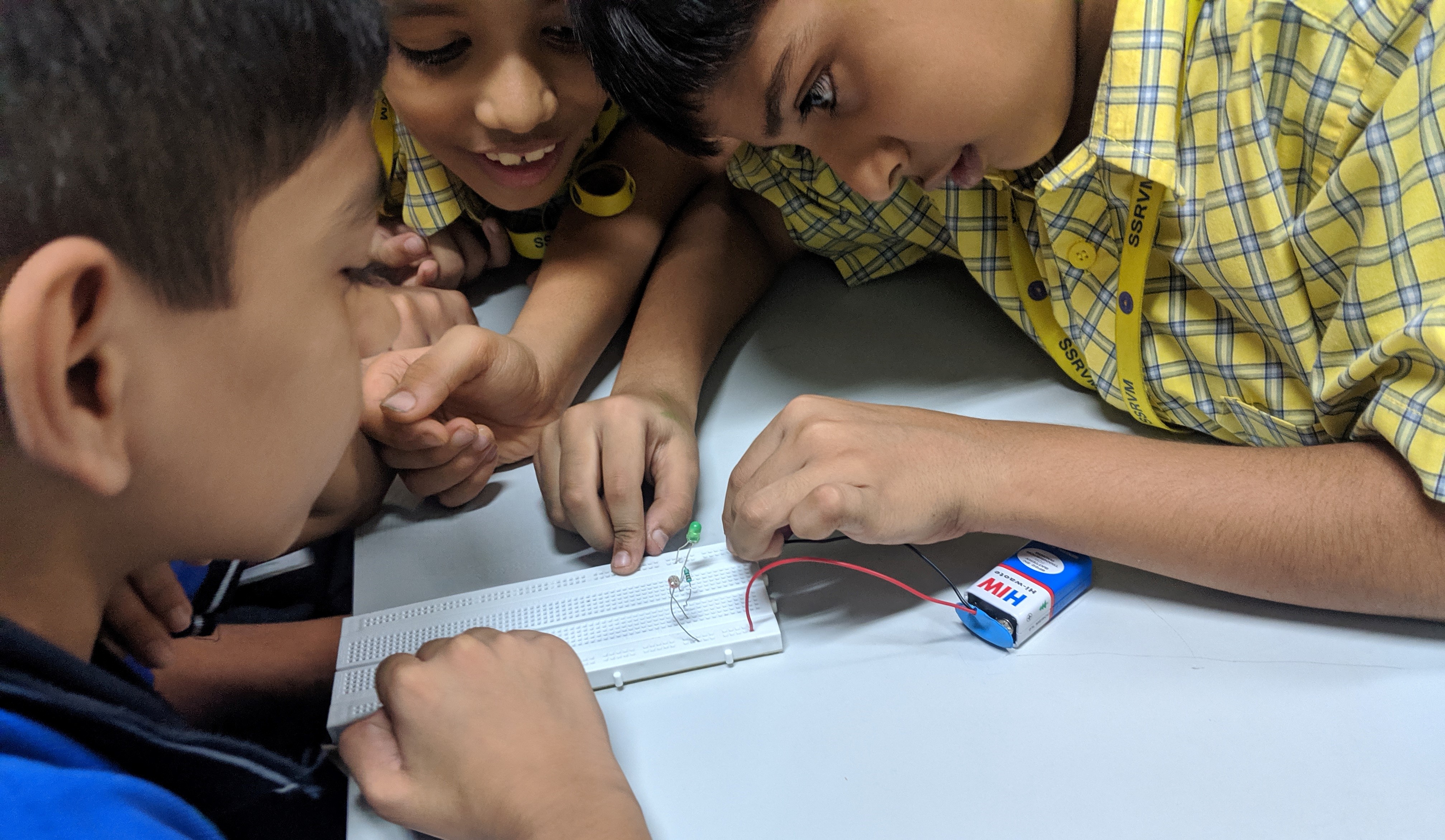 This stage of the STEM lab school curriculum grabs the students' attention by kicking off with how technology can be integrated with crafts - an aesthetically pleasing introduction to raising their motivation levels for what lies ahead. It then introduces them to motions and mechanisms, and finally to the breadth of STEM.